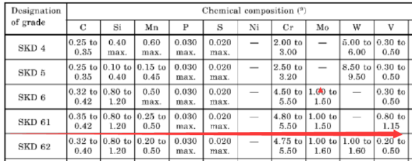 SKD61化學(xué)成分如下圖: